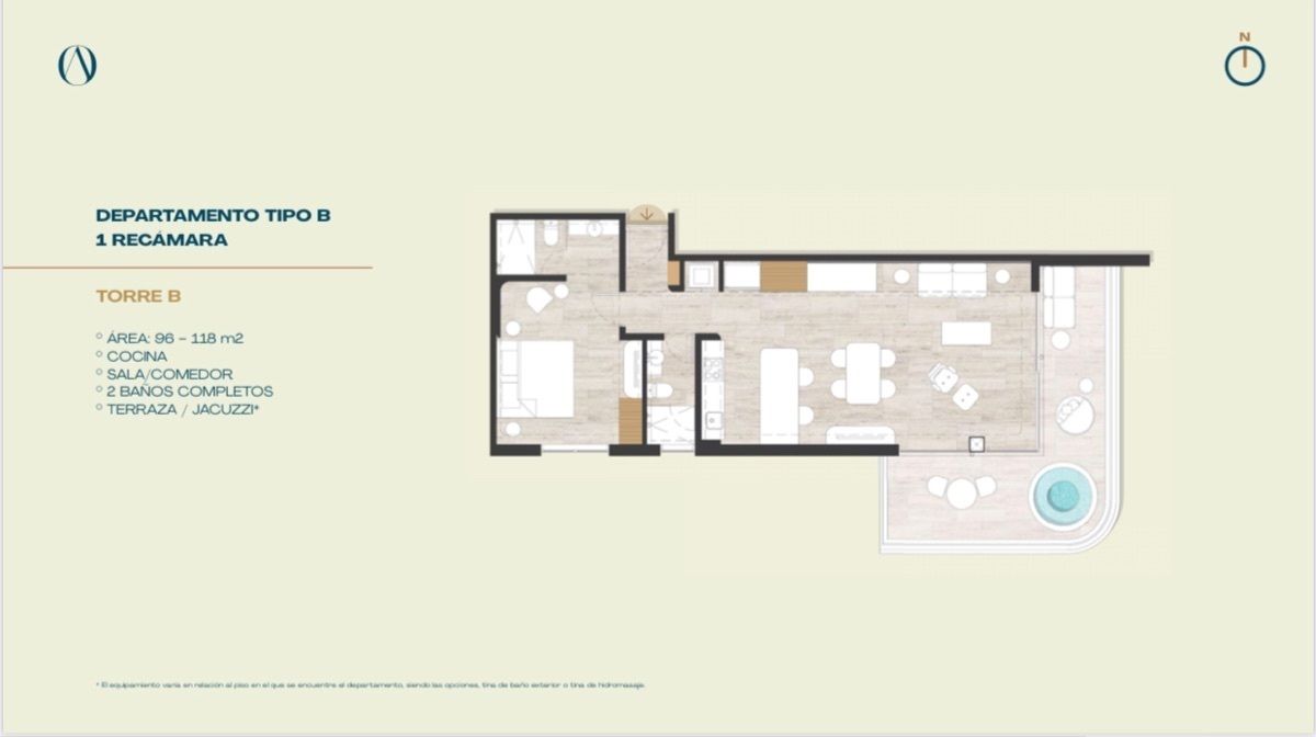 • Alberca, Solárium, área de bar y parrilla, gimnasio, lobby tipo hotel, elevador y estacionamiento